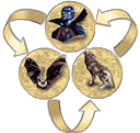 a) the Man changes in Wolf, the Wolf changes in Bat and the Bat changes in Man. | |